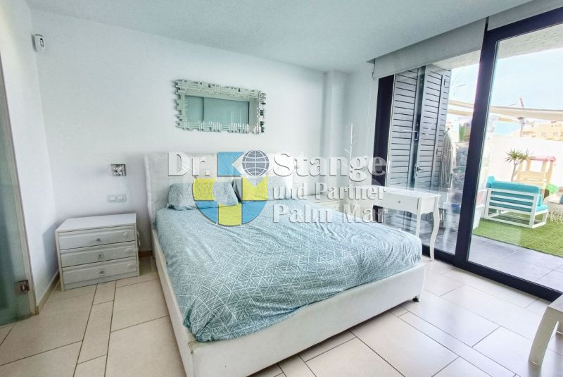 Ubicado en planta baja en una esquina del complejo con una terraza de 200 metros cuadrados, este apartamento ofrece un ambiente tranquilo y privado que te encantará. Disfruta del confort del aire acondicionado en toda la propiedad y relájate en las hermosas piscinas comunitarias, una de ellas diseñada especialmente para los más pequeños.